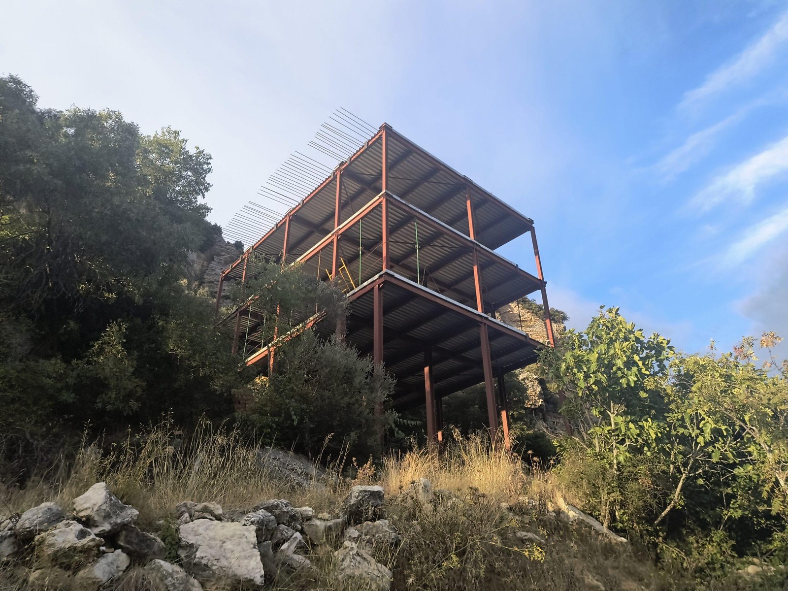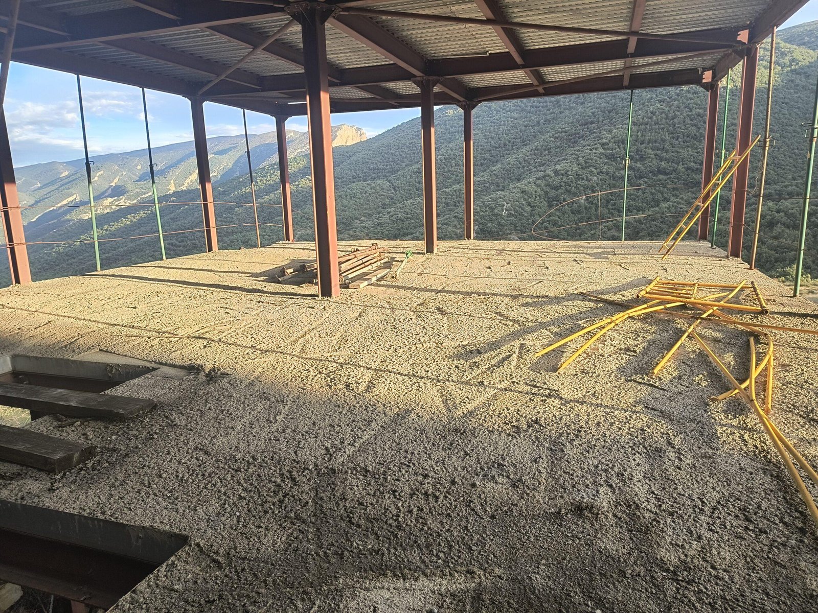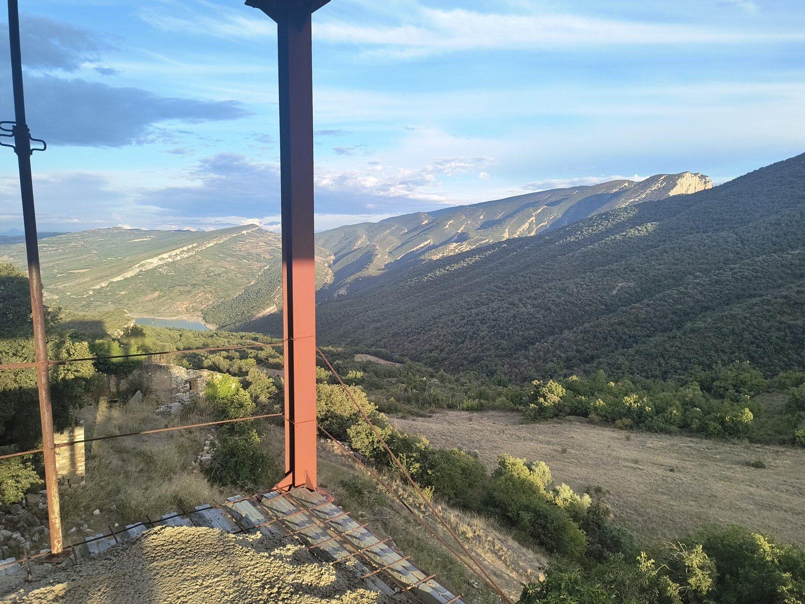 Antiguo edificio a mitad de construir en plena Sierra del Montsec. No tiene paredes por lo que no protege mucho del aire, pero sí nos protegerá de una tormenta e incluso de animales salvajes. El mejor sitio para pasar la noche es la primera planta pero no se puede subir la bici, hay que dejarla en la parte de abajo. Preciosas vistas a Mont-Rebei.