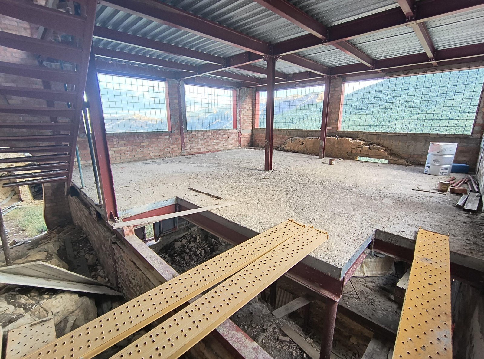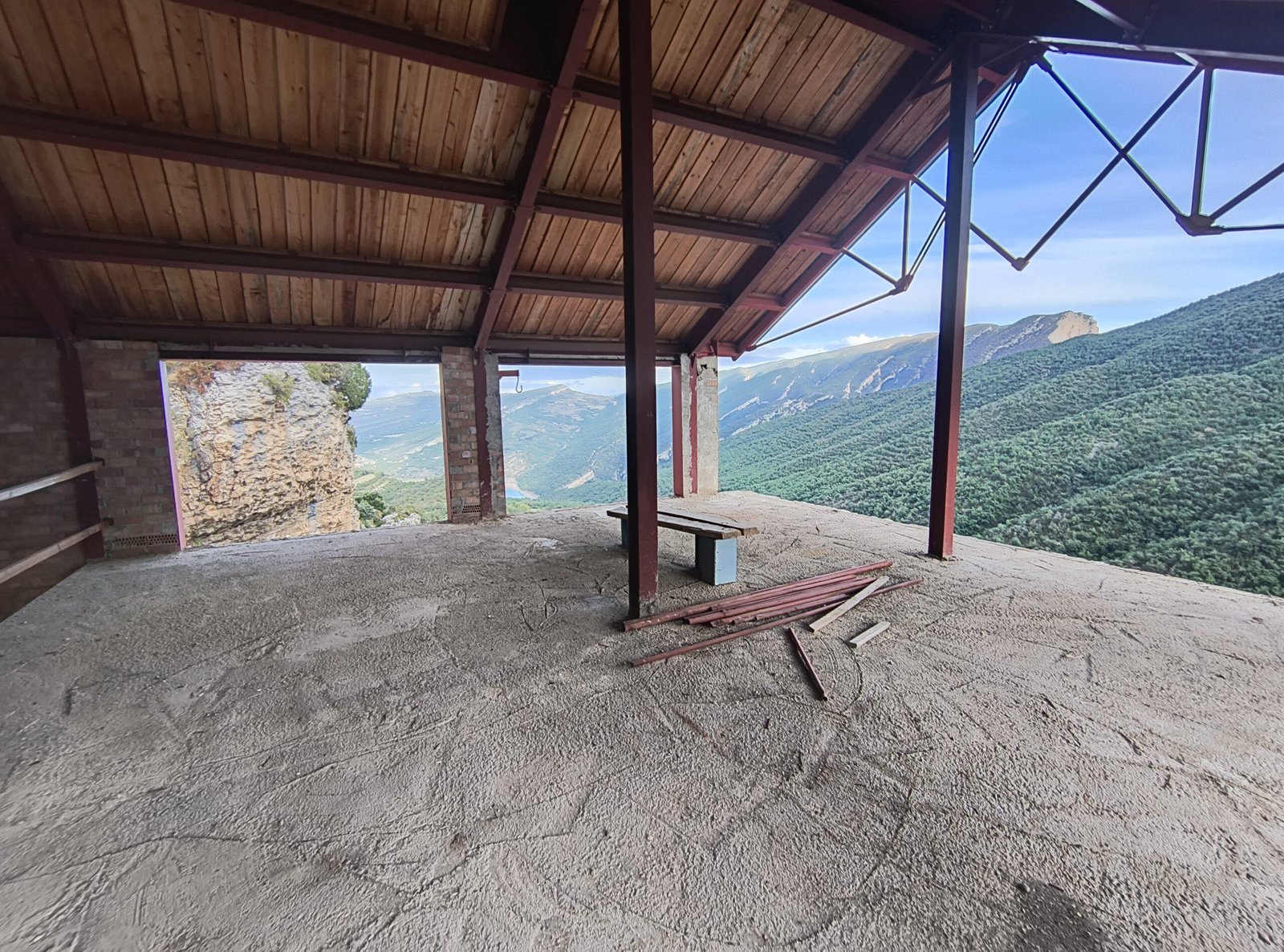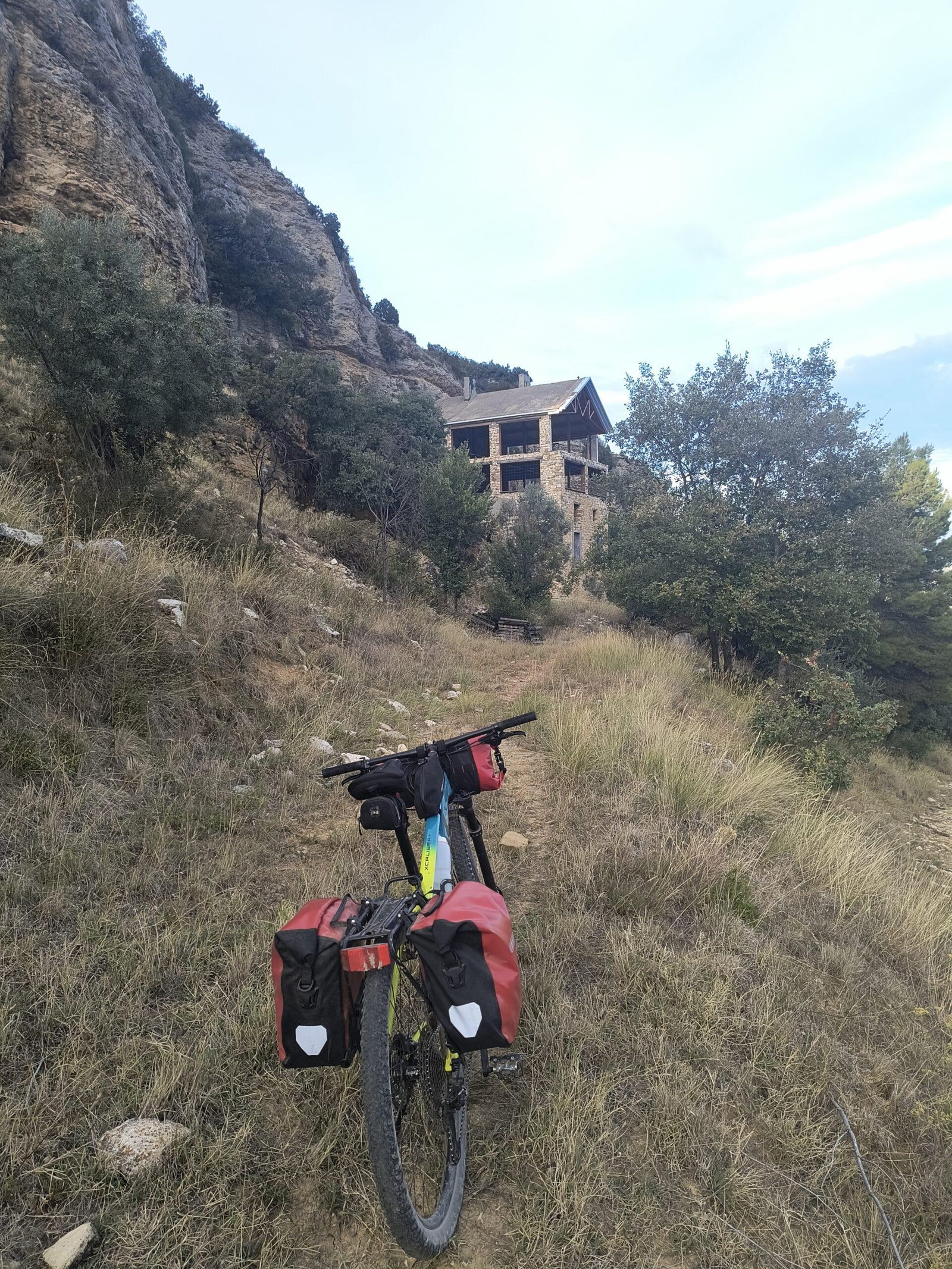 Antiguo edificio a mitad de construir en plena Sierra del Montsec, en el despoblado de Montgai. Muchos ventanas abiertas, por lo que no protege del todo del aire, pero sí nos protegerá de una tormenta e incluso de animales salvajes. El mejor sitio para pasar la noche es la primera planta pero no se puede subir la bici, hay que dejarla en la parte de abajo. Preciosas vistas a Mont-Rebei.